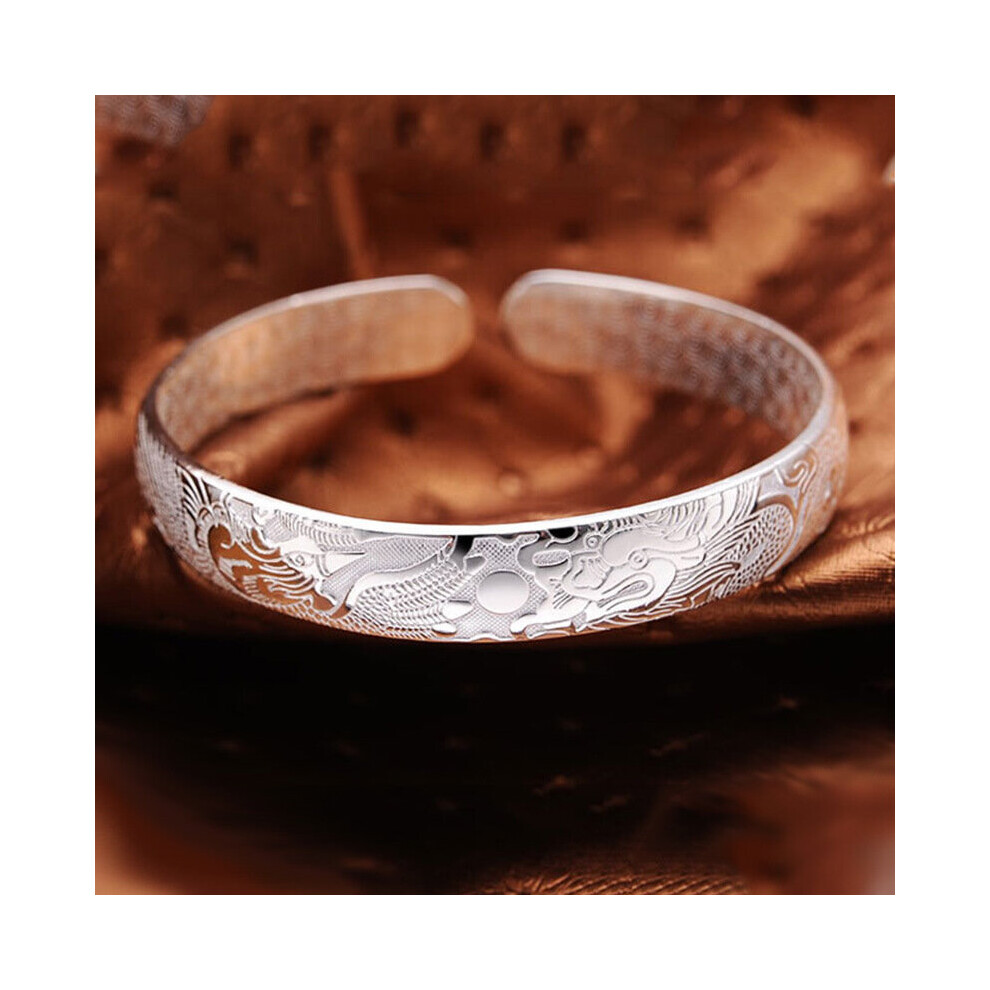 925 Sterling Silver Phoenix Bangles For Women Bracelet Jewelry Accessories Items GaaBou