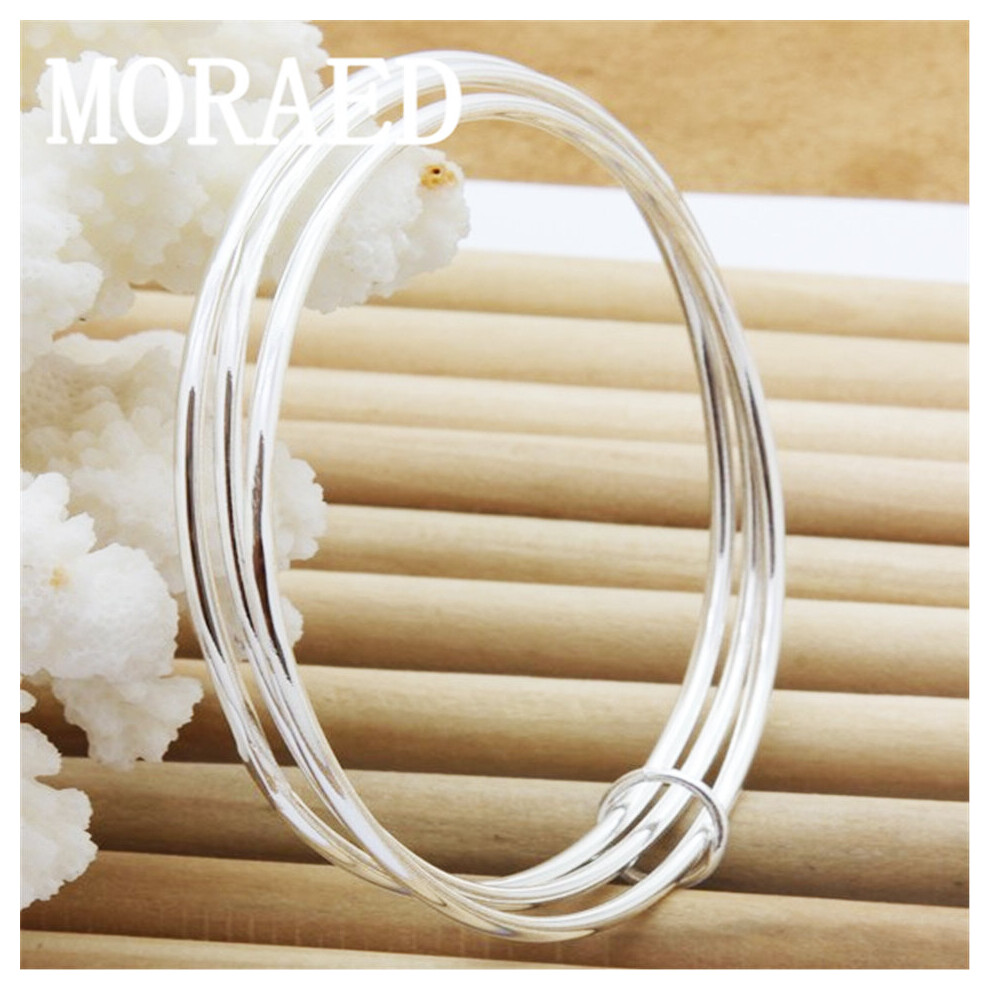 925 Sterling Silver Bangles Woman Three Lines Smooth High Solid Bracelet Bangles Fine Jewelry
