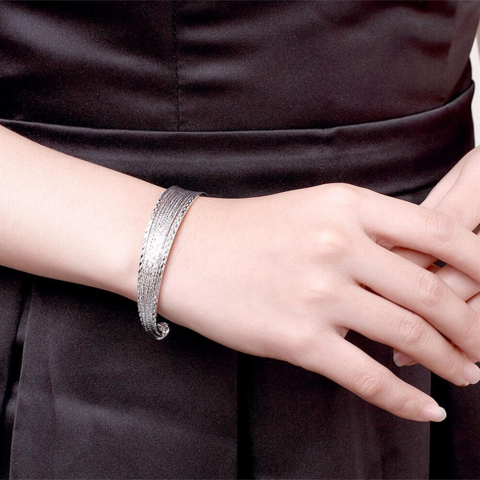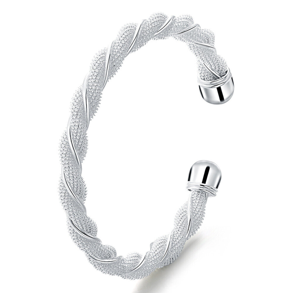 925 Sterling Silver Twisted Network Bangles For Women Cuff Bracelets Jewelry
