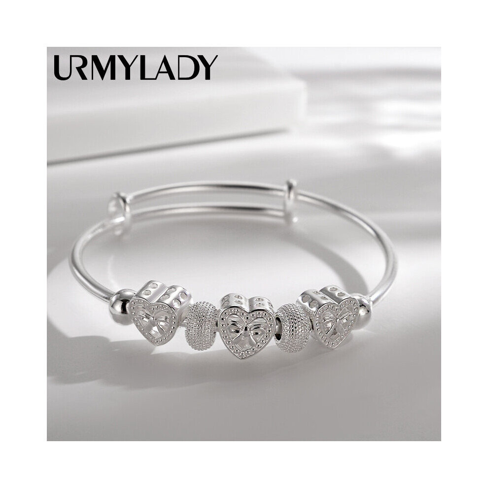 925 Sterling silver Romantic heart Bangles bracelets for women Birthday party wedding jewelry