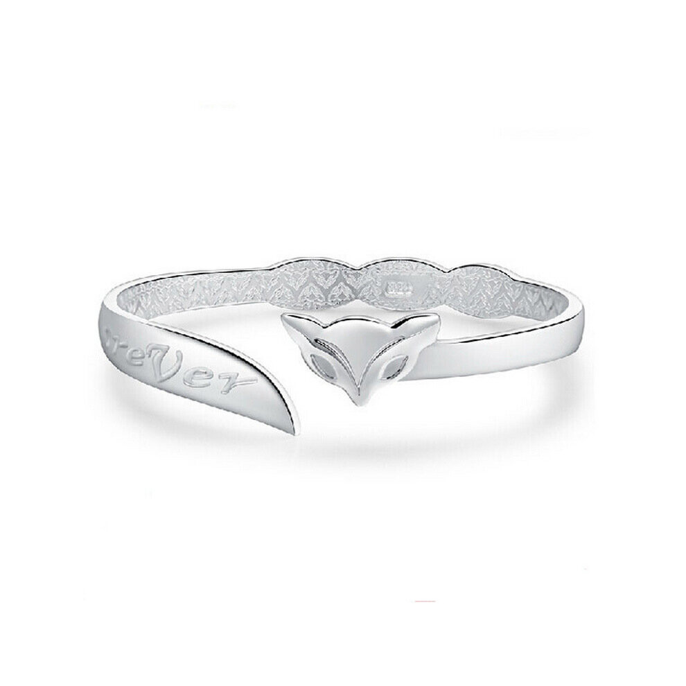 European Woman Girl Party Wedding Gift Fox Forever 925 Sterling Silver Open Bangles Bracelet BE154