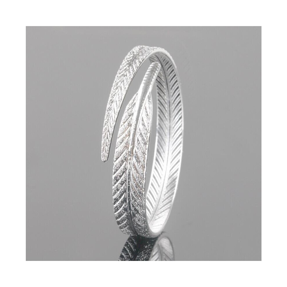 Unique Women 925 Sterling Silver Leaf Bangles Open Cuff Bracelets & Bangles Fine Jewelry pulseras