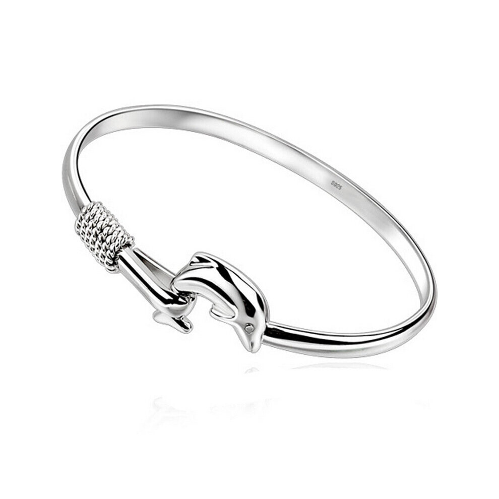 OMHXFC European Woman Girl Party Birthday Wedding Gift Dolphin 925 Sterling Silver Bangles Bracelets BE143