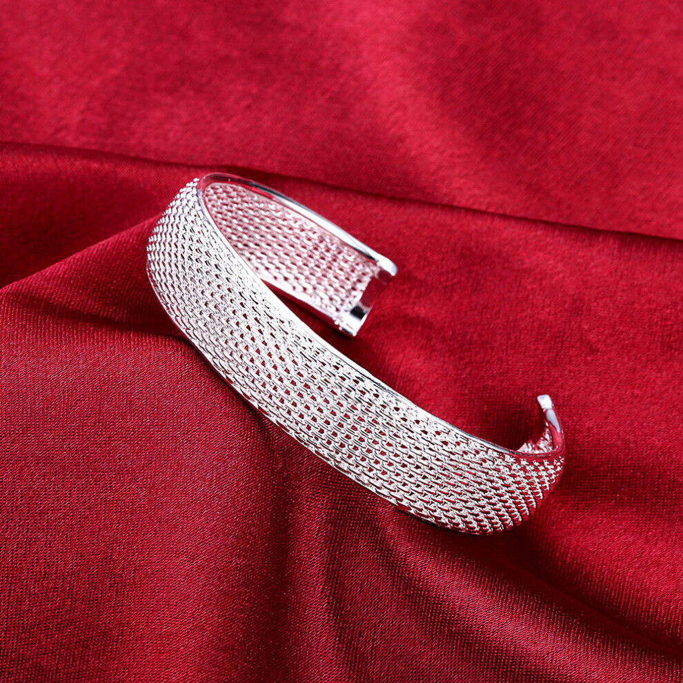 Women Jewelry 925 Sterling Silver Hypotenuse Network Bangles Cuff Bracelets