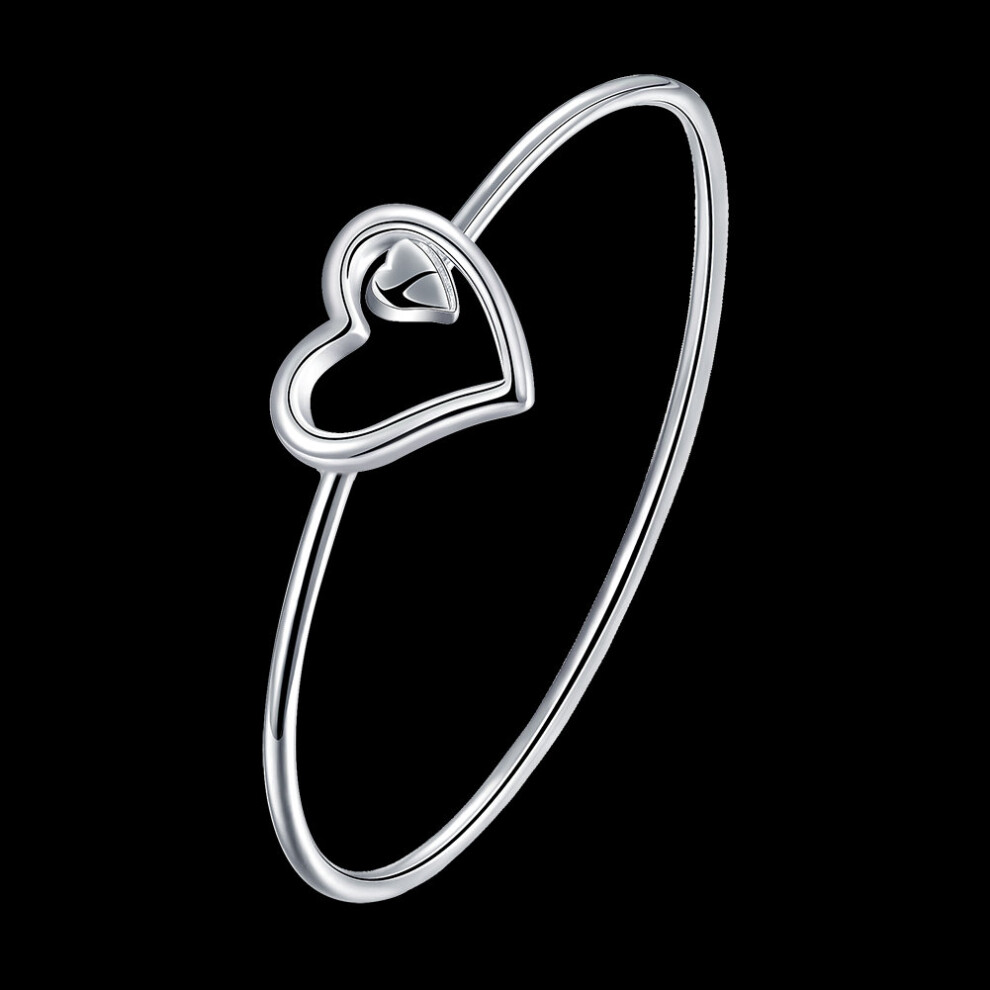 Women's 925 Sterling Silver Heart LOVE Bangles Bracelet Fine Jewelry Gift Offers