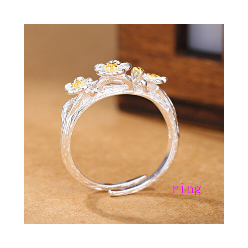 European Woman Girl Party Wedding Gift Plum Blossom 925 Sterling Silver Open Bangles Bracelets BE148