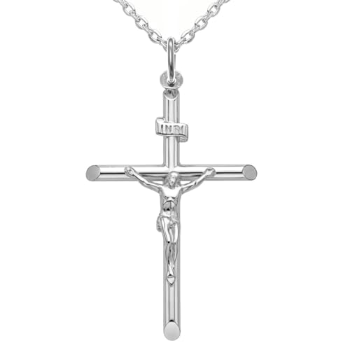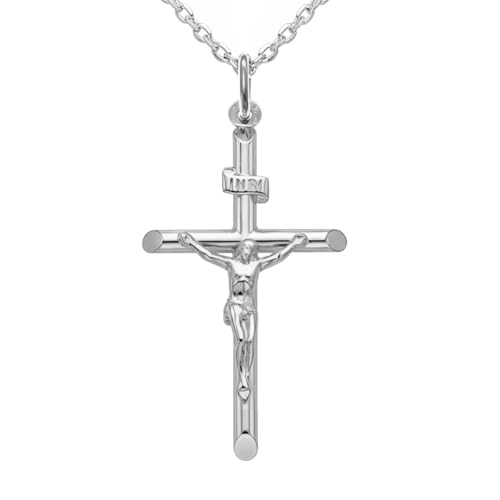 ZIPPICE Crucifix Necklace 925 Sterling Silver Jesus Cross Pendant Necklace with Stainless Steel Chain Catholic Pendant Cross and Chain Jewellery Gift for Men Women 2025 Christmas Gifts