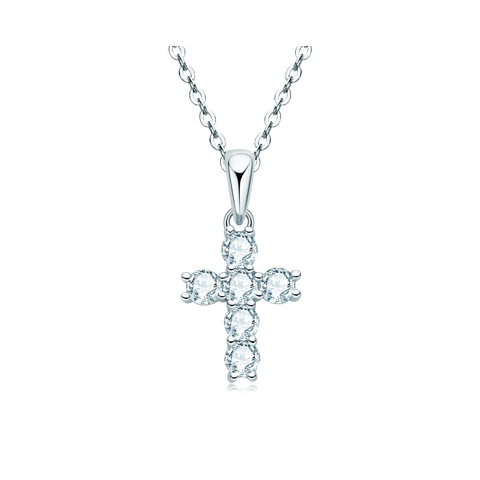 GAVU 925 Sterling Silver Small Diamond Cross Necklace for Women, Cubic Zirconia Cross Necklace