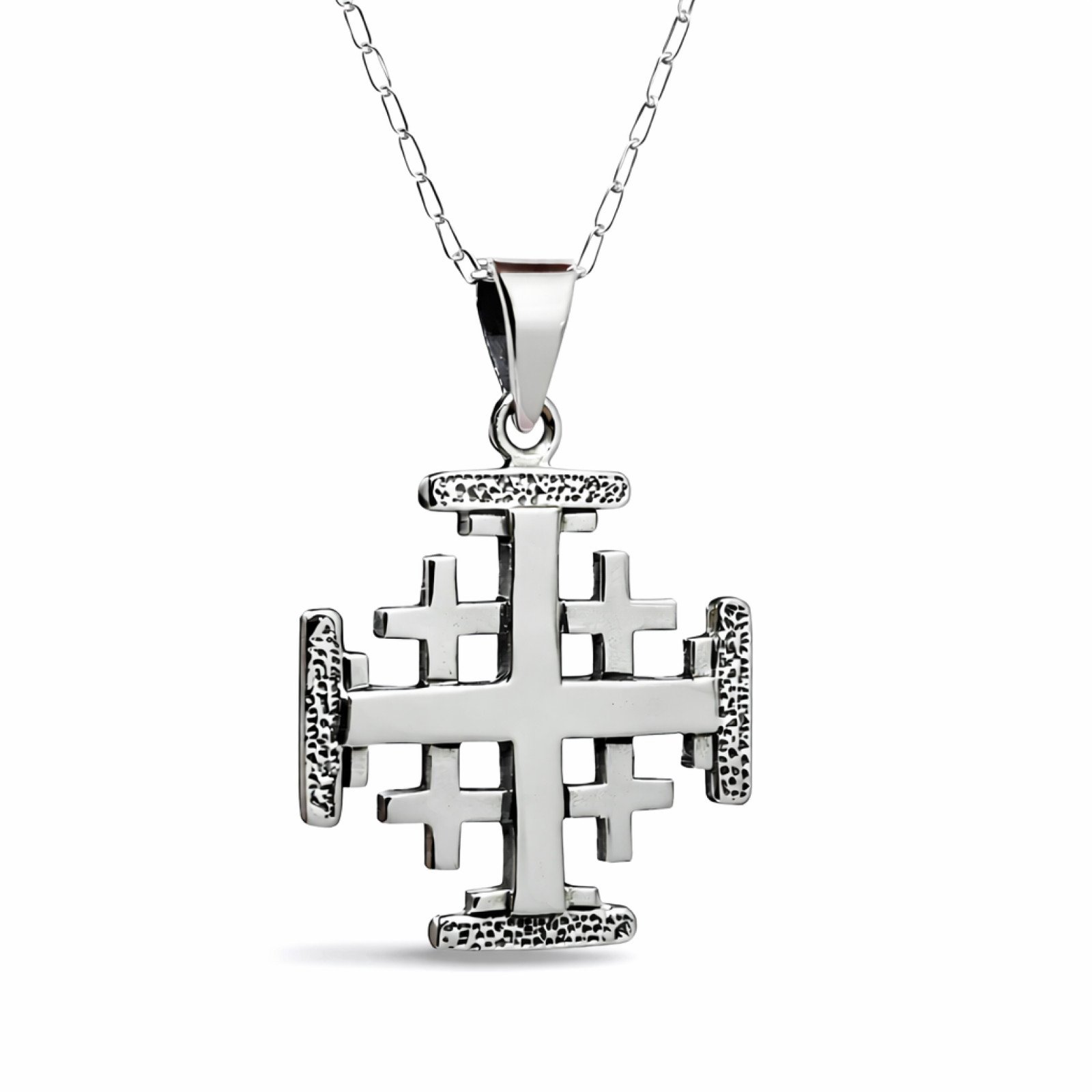 Jerusalem Cross Pendant 925 Sterling Silver Five Fold Cross Necklace & Boxed