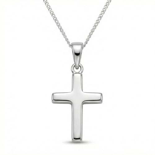 Alexander Castle Small 925 Sterling Silver Cross Necklace for Children - Silver Crucifix Necklace Pendant with 16" Sterling Silver Chain & Jewellery Gift Box - 31mm x 18mm