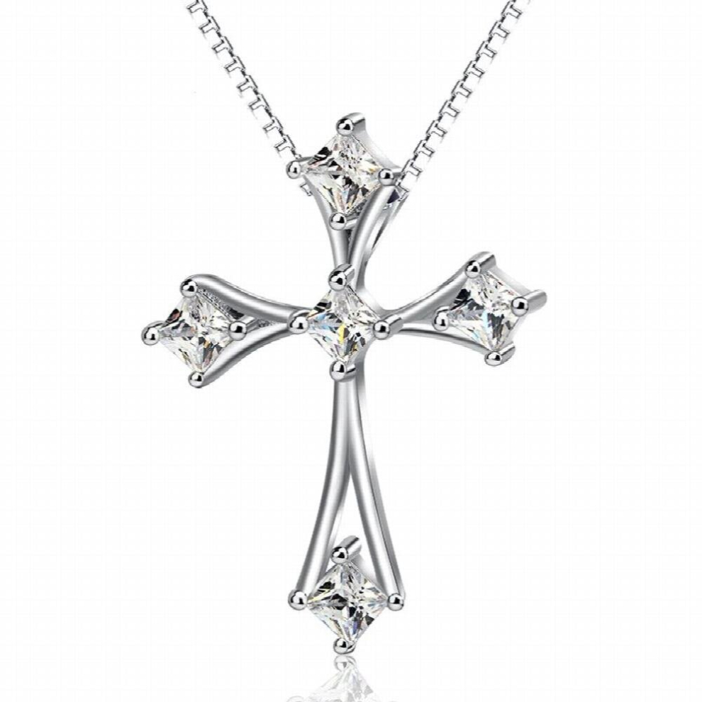 S925 sterling silver necklace crystal cross necklace Christ religion pendant necklace