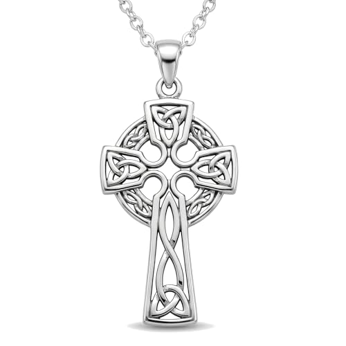Hukkun Sterling Silver Celtic Cross Necklace - Viking Cross Pendant with Irish Knot Design - Gift for Men
