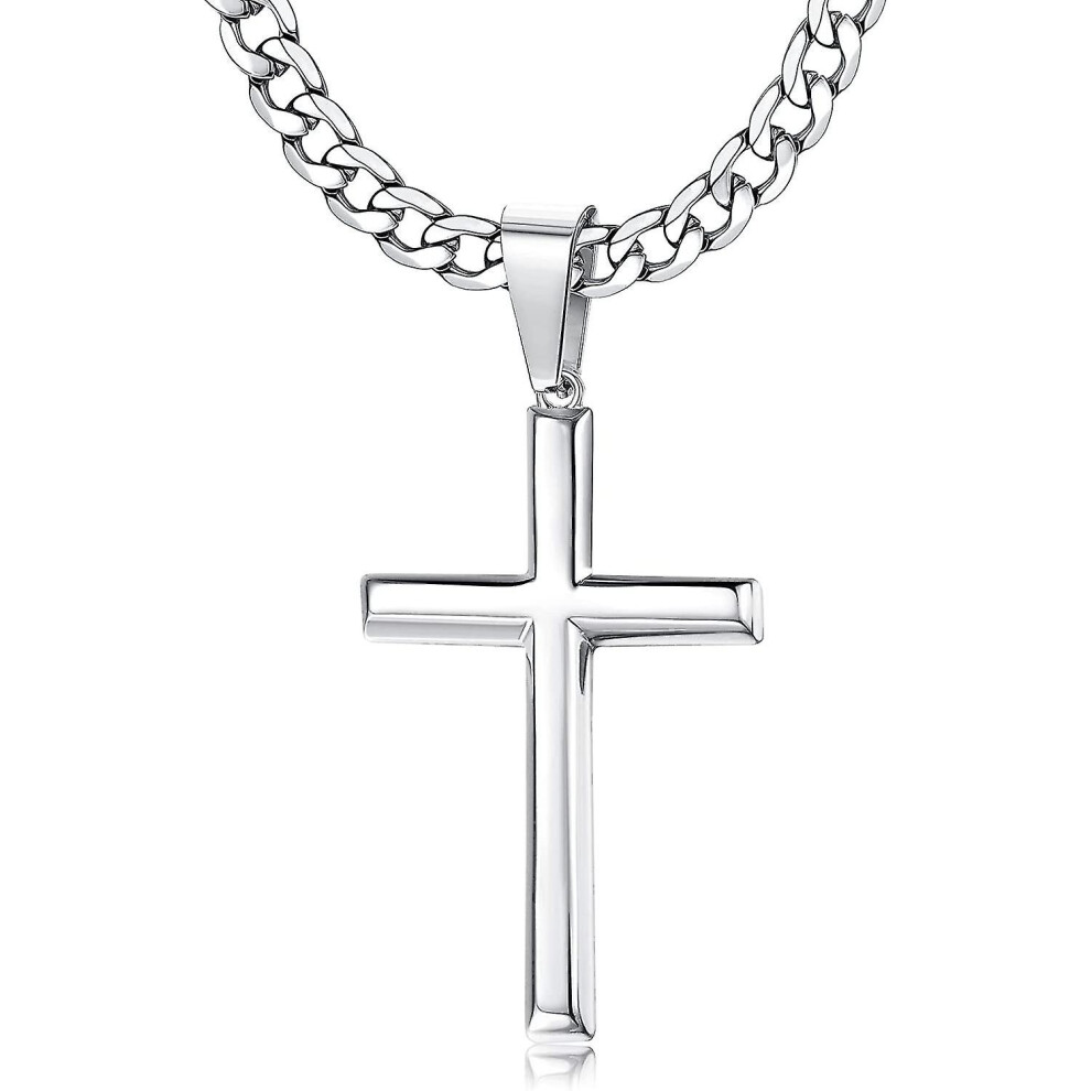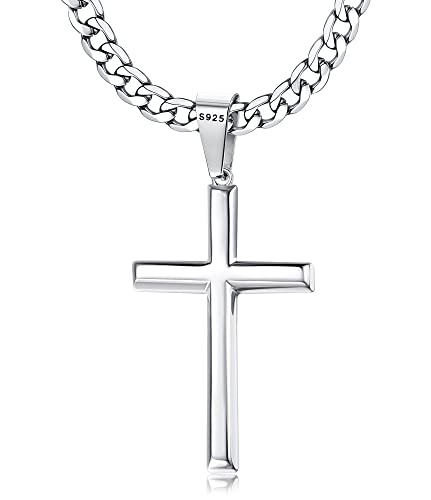 FIOROYAL 925 Sterling Silver Cross Necklace for Men Stainless Steel Silver Cuban Chain Silver Cross Pendant Necklace for Women Crucifix Necklace Cross Chain Necklace Jewellery 56CM