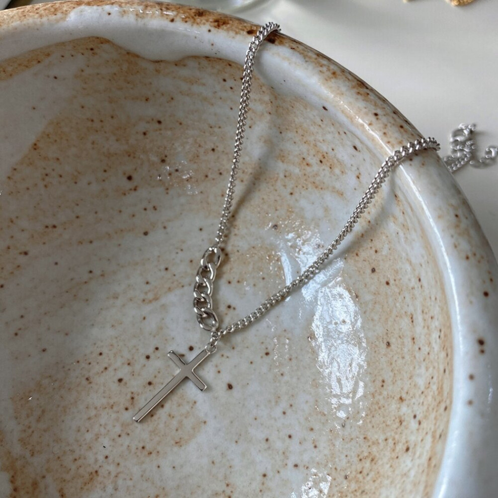 S925 Sterling Silver Personalized Cross Pendant Necklace for Men and Women, Simple 50cm Chain Included