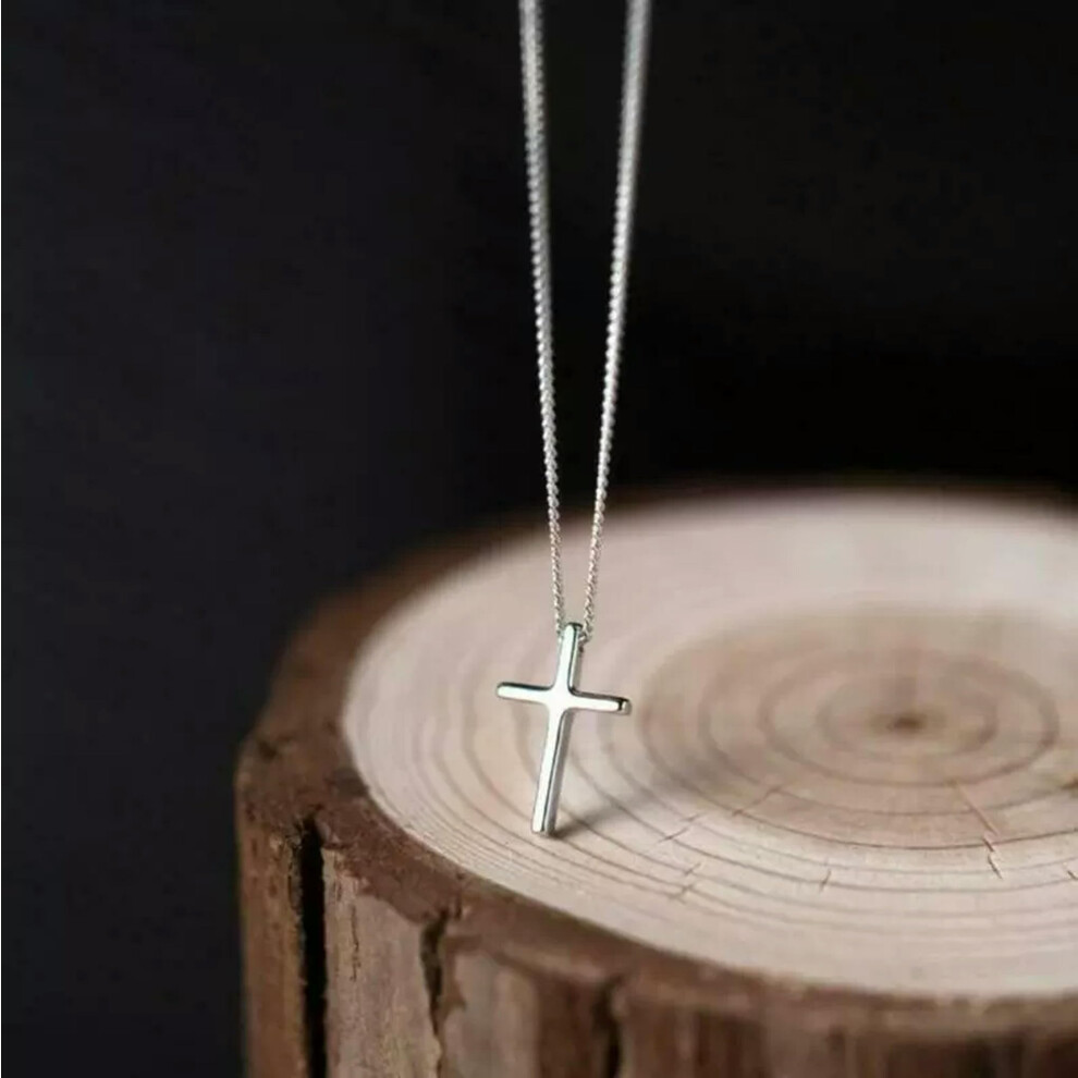Sterling Silver Cross Necklace Unisex Simple Christian Cross Single Pendant Prayer Necklace