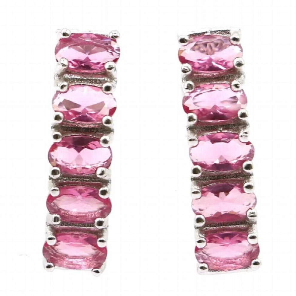 14x5mm Lovely 2.1g Pink Tourmaline For Ladies Daily Wear Real 925 Solid Sterling Silver Earings