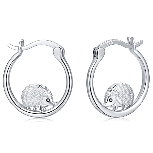 Hedgehog Earrings for Girls 925 Sterling Silver Hedgehog Gifts for Women Animal Hoop Earrings Hypoallergenic Cute Stud Small Earings Hedgehog Jewellery for Girls Kids Childrens
