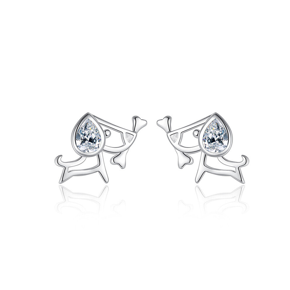 TrustDavis Real 925 Sterling Silver Earings Lovely Animal Dog Stud Earrings For Women Girls Fine Dazzling CZ Jewelry Gift F06
