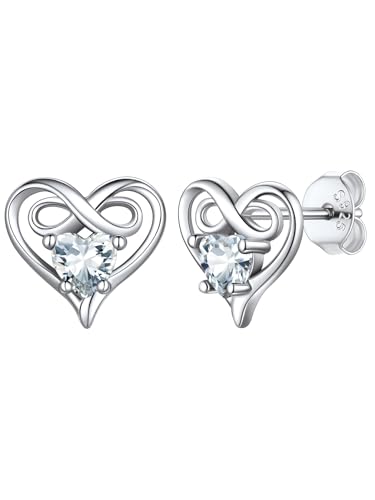 Silvercute April Heart Stud Earings Birthstone Jewellery for Granddaughter Womens Infinity Earrings Sterling Silver