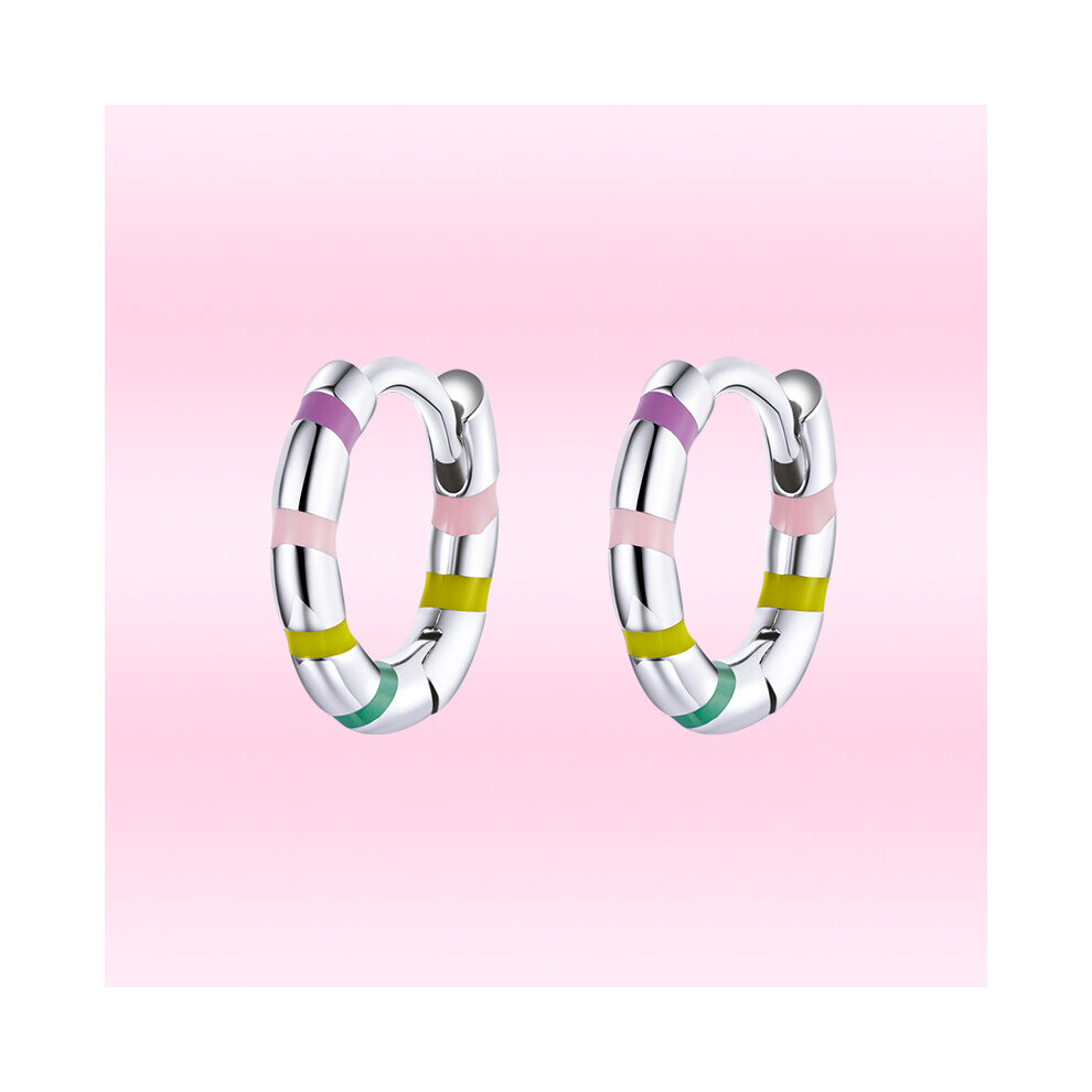 Bamoer Mini Ribbon Earrings for Women 925 Sterling Silver Colorful Earings All-Match Jewelry