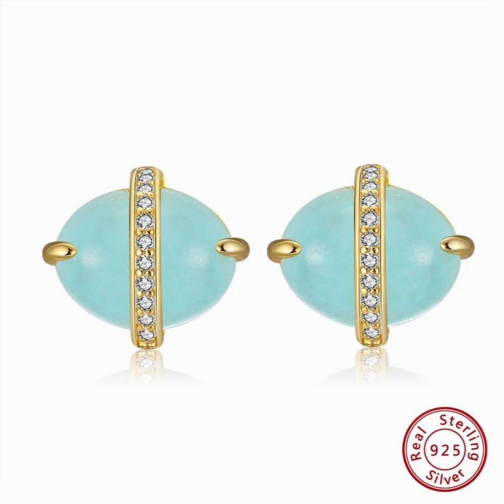 Oval Shape Natural Aquamarine Stud Earrings in Solid 925 Sterling Silver for women Earings Jewelry GME04