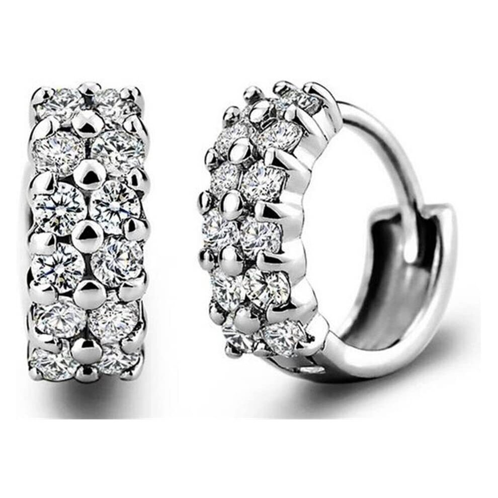 Boowhol Women's Diamond Clip on Earings Hoop Creole Double Row Glitter Diamond 925 Sterling Silver Earrings