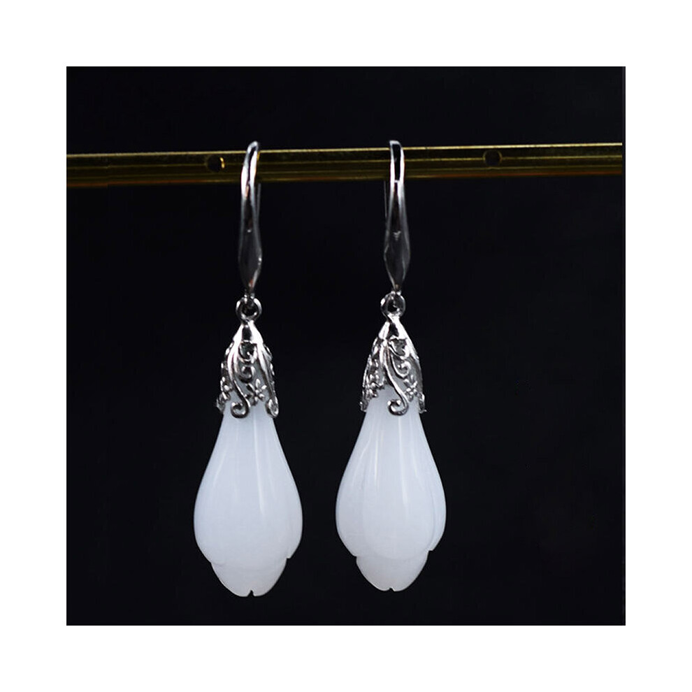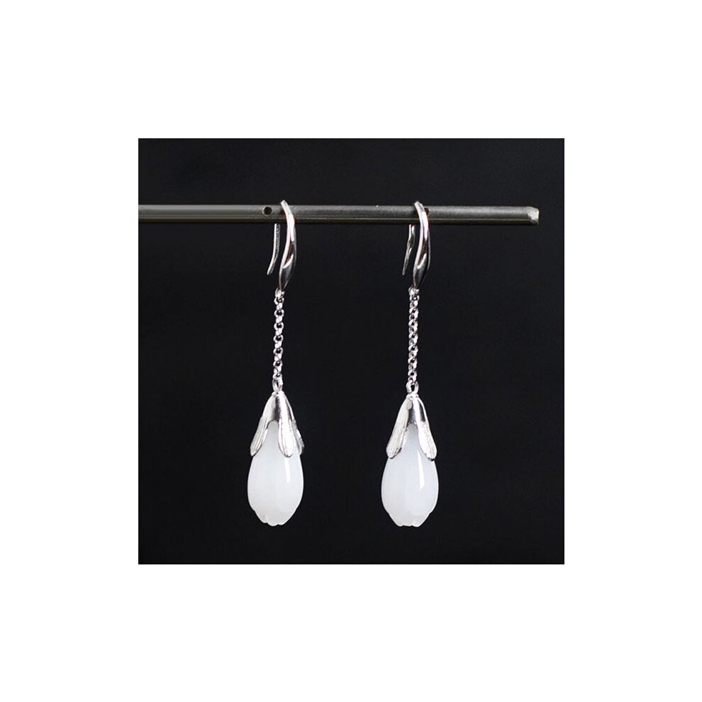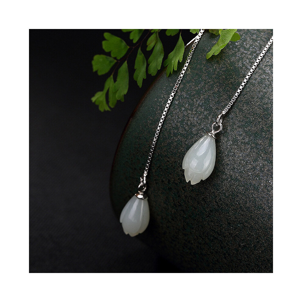 925 sterling silver earings Jade jewelry earrings jade Women's gems 925 silver chain earrings Long wedding orchid
