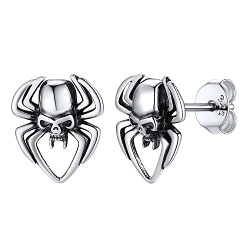 Silvercute Sterling Silver Stud Gothic Earrings For Boyfriend Men Women Halloween Spider Earings Jewellery
