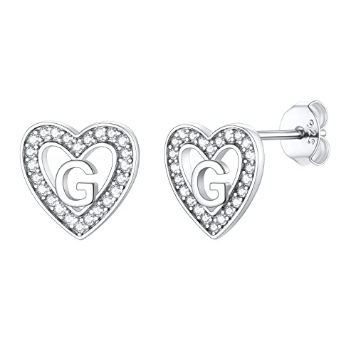 Silvercute Earrings Stud Cubic Zirconia Cute Initial G Letter Earring For Girls Women Sterling Silver Heart Earings