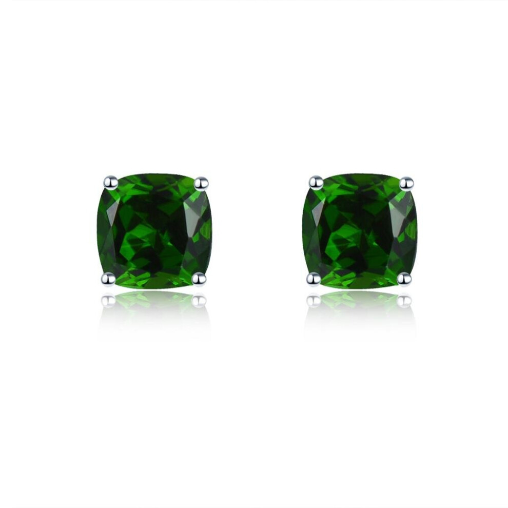 Hutang Cushion 5.0mm Diopside Stud Earrings 925 Sterling Silver Kid Earrings Earings Gemstone Girls Jewelry