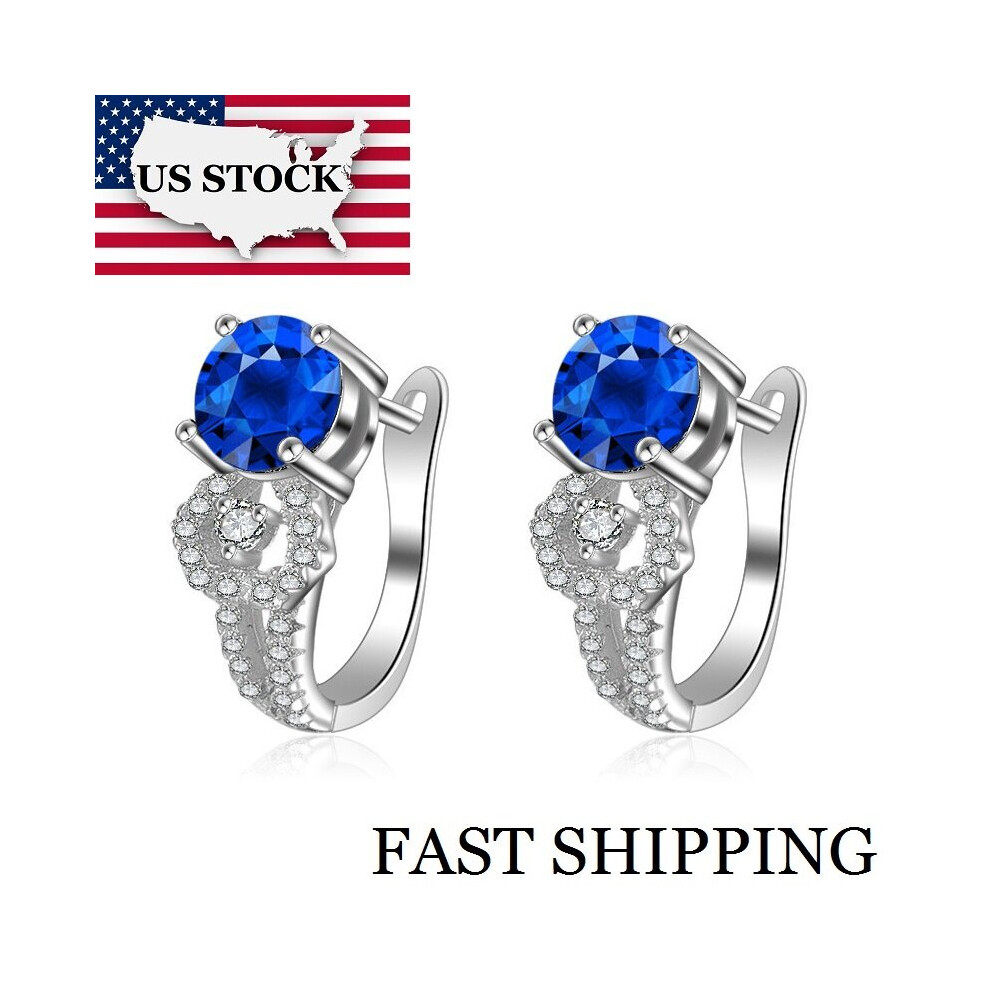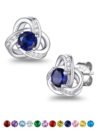 Suplight Love Knot Earrings for Women Girls 925 Sterling Silver September Birthstone Stud Earring Womens Sapphire Cubic Zirconia Earings Valentines Jewellery