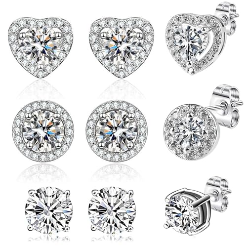 3 Pairs 925 Sterling Silver CZ Stud Earrings Set 4mm 5mm 6mm Hypoallergic Cubic Zirconia Stud Earrings Men Women Earings Sparkly Stack Earrings for Sensitive Ear