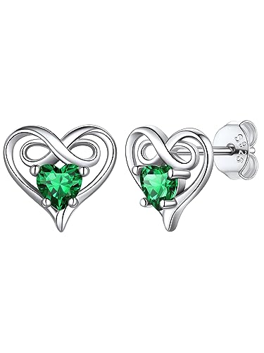 Silvercute Infinity Heart Stud Earings for Mother Womens Birthstone Pendant Emerald Sterling Silver Earrings May Jewellery