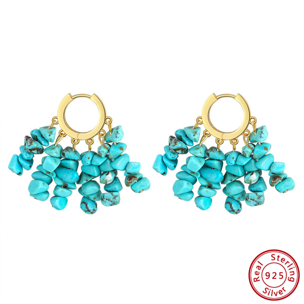 ORSA JEWELS Irregular Shape Natural Turquoise Beads Hoop Earrings 925 Sterling Silver Gemstone Earings for Women Jewelry GME23