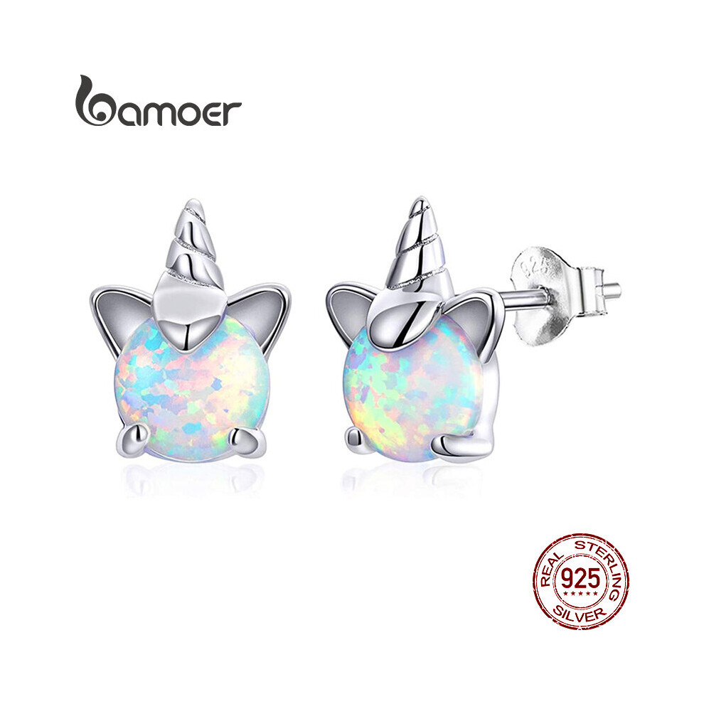 Opal Unicorn Stud Earrings for Girl 925 Sterling Silver Hypoallergenic Earings Jewelry SCE737