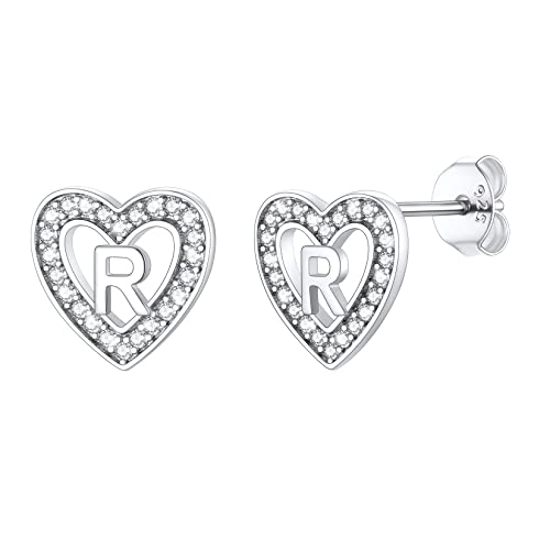 Silvercute Stud Earrings For Women Sterling Silver Girls Heart Earring Daily Jewellery Initial R Letter Earings