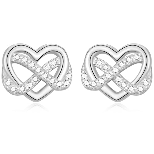 Silver Stud Earings for Women Girls, 925 Sterling Silver Infinity Heart Stud Earrings - Cubic Zirconia Stud Earrings for Mum Wife Her Birthday Mother's Day Valentine’s Day Christmas Gifts