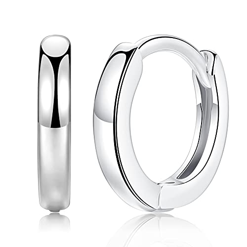 Silver Hoop Earings for Womens - Small 8mm Hoop Earrings Sterling Silver Cartilage Sleeper Hoops, Girls Silver Earrings Set | Hypoallergenic Helix Tragus Jewellery Endless Huggie Hoops for Men