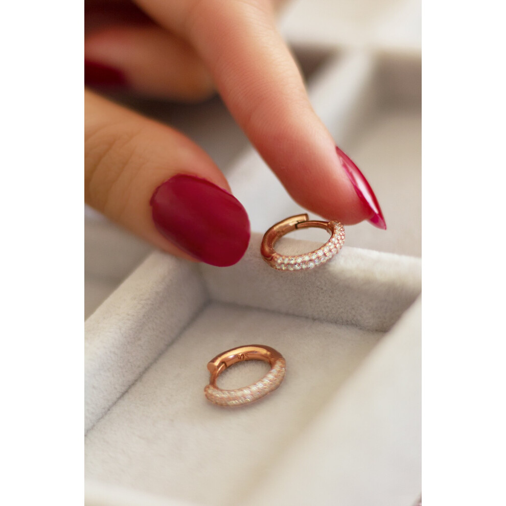 Small Silver Hoop Earrings for Women Men | Sterling Silver Post Double-row Cz Cubic Zirconia Pave Hinged Huggie Hoops Cartilage Helix Earings, Piercings Jewelry (8mm)
