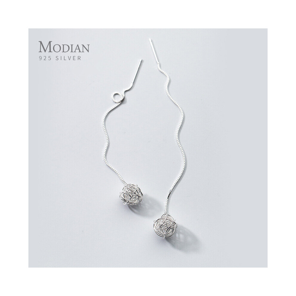 Minimalism Unique Long Chain Ball Earrings for Women 925 Sterling Silver Dangle Earings Drop Ear Jewelry
