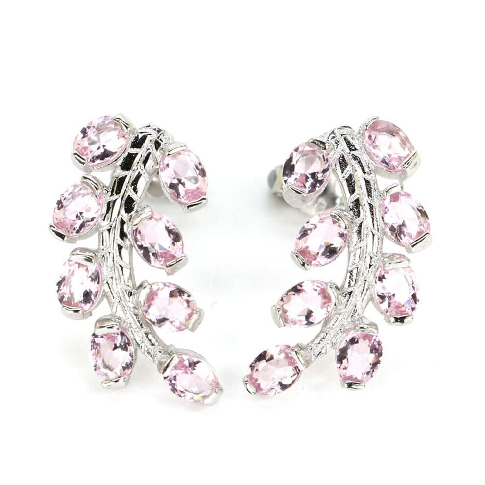 20x11mm Lovely Leaf 3.5g Created Pink Kunzite For Ladies Daily Wear 925 Solid Sterling Silver Earings