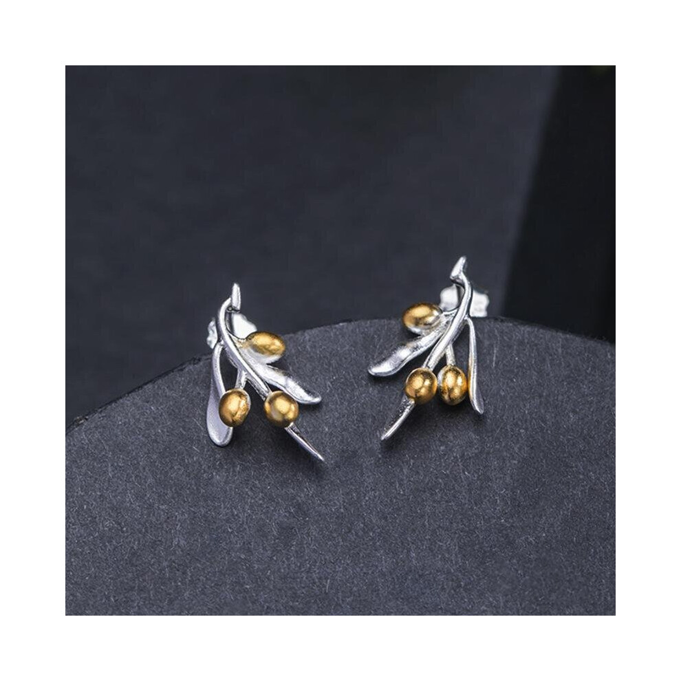 18k Plating Olive Berries Stud Earrings For Women 925 Sterling Silver Leaves Earings Vintage Femme Fine Jewelry