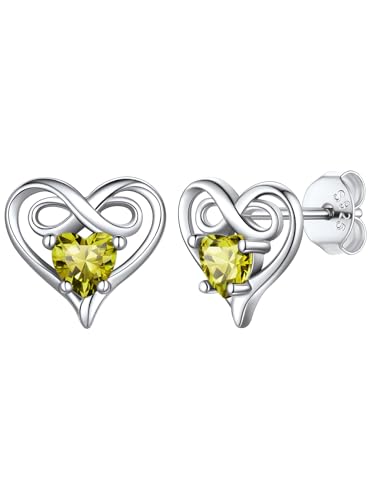 Silvercute Cute August Birthstone Gift Peridot Jewellery for Women Teenage Infinity Earings Sterling Silver Heart Stud Earrings
