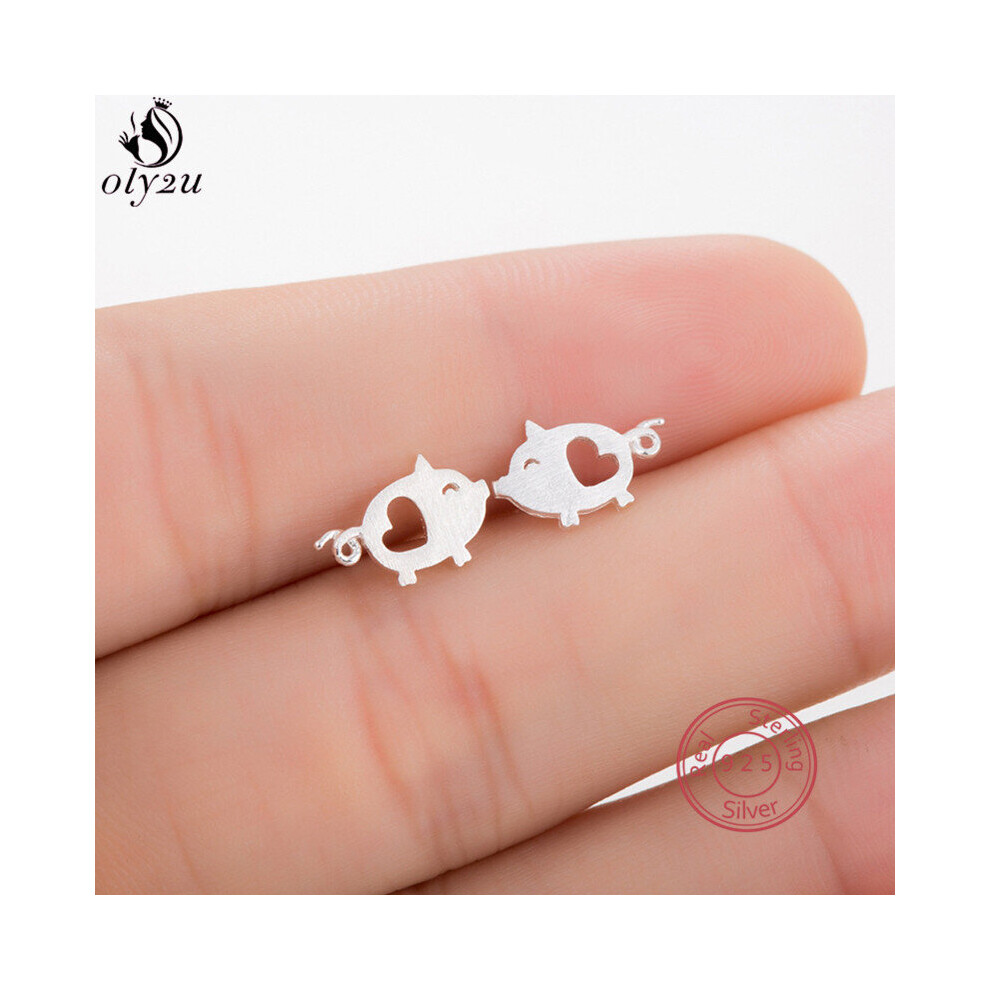 Lovely 925 Sterling Silver Earings Women Tiny Hollow Heart Pig Stud Earrings Birthday Gift for Girls Kids Boucle d'oreille
