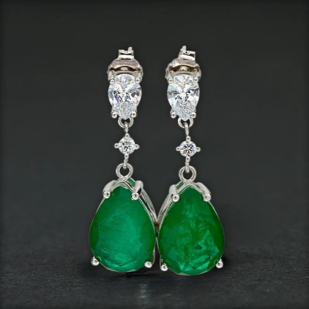 Charms 10X14MM Emerald Drop Earrings Women Green Gemstone Jewelry Sterling Silver 925 Dangle Earings Jewelry