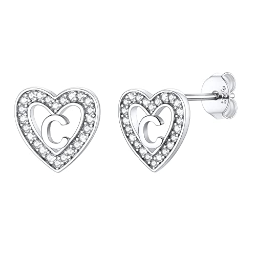 Silvercute Earrings Studs 925 Sterling Silver Heart Earings For Girls Women Cute Initial C Letter Earrings Cubic Zirconia