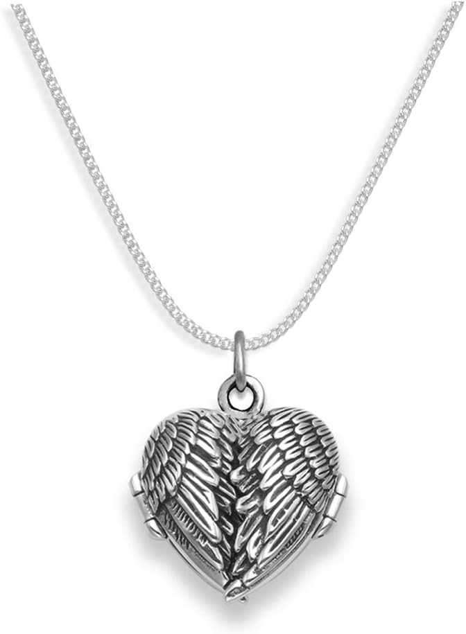 Genuine 925 Sterling Silver Angel wings locket Necklace on 18" silver chain 1.5mm thick - SIZE: 19mm x 23mm (inc. pendant ring) - Gift Boxed. 8017/8501/18