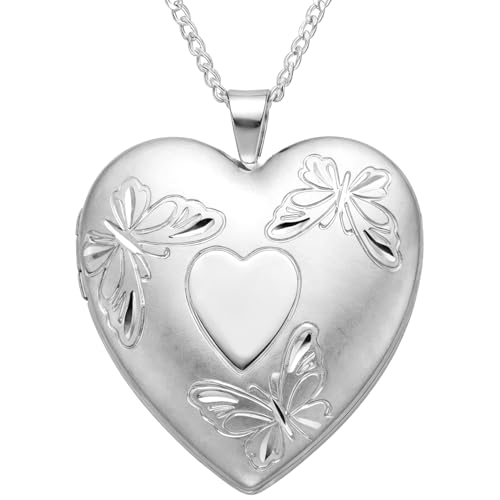 Alexander Castle 925 Sterling Silver Locket Necklace for Women - Girls 4 Photo Locket - 24mm x 24mm Butterfly Heart Locket with 18" Silver Chain & Jewellery Gift Box