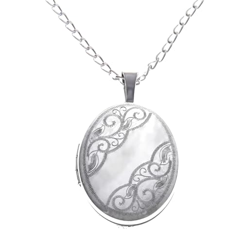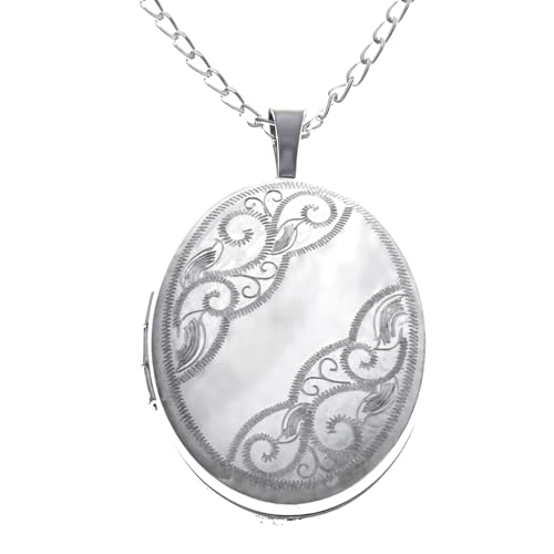 Luck Trader Solid 925 Sterling Silver Vintage Oval Locket Necklace for Hair, Photo, Keepsake Gifts for Mum Her Wife Girlfriend Anniversary Birthday Mothers Day Christmas Valentines