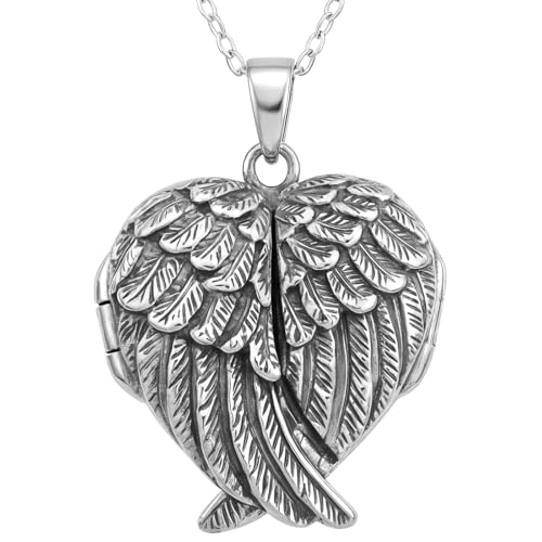 Alexander Castle Angel Wings 925 Sterling Silver Locket Necklace for Women - Girls 2 Photo Locket - 25mm x 25mm Locket with 18" Silver Chain & Jewellery Gift Box